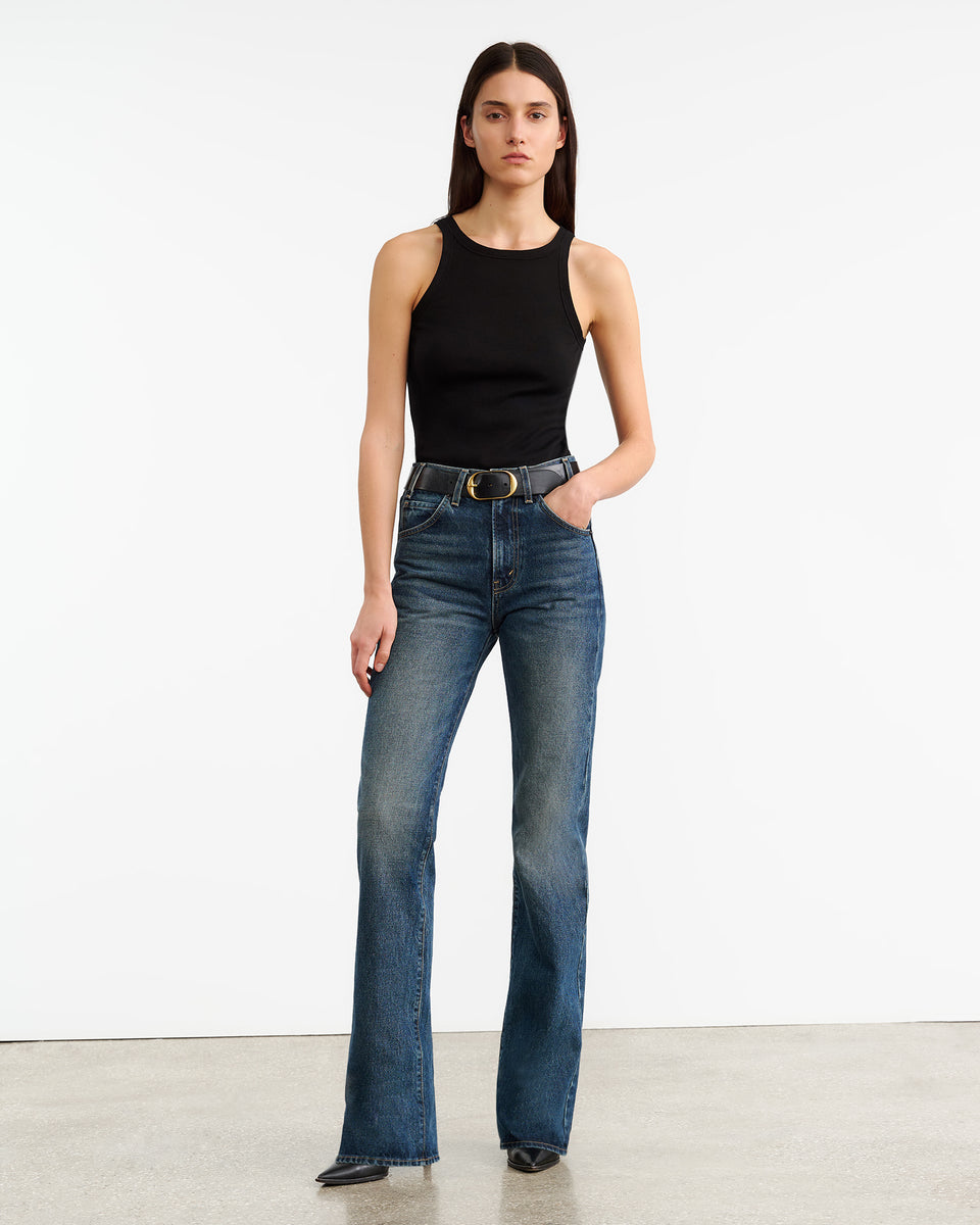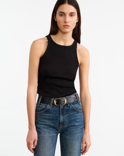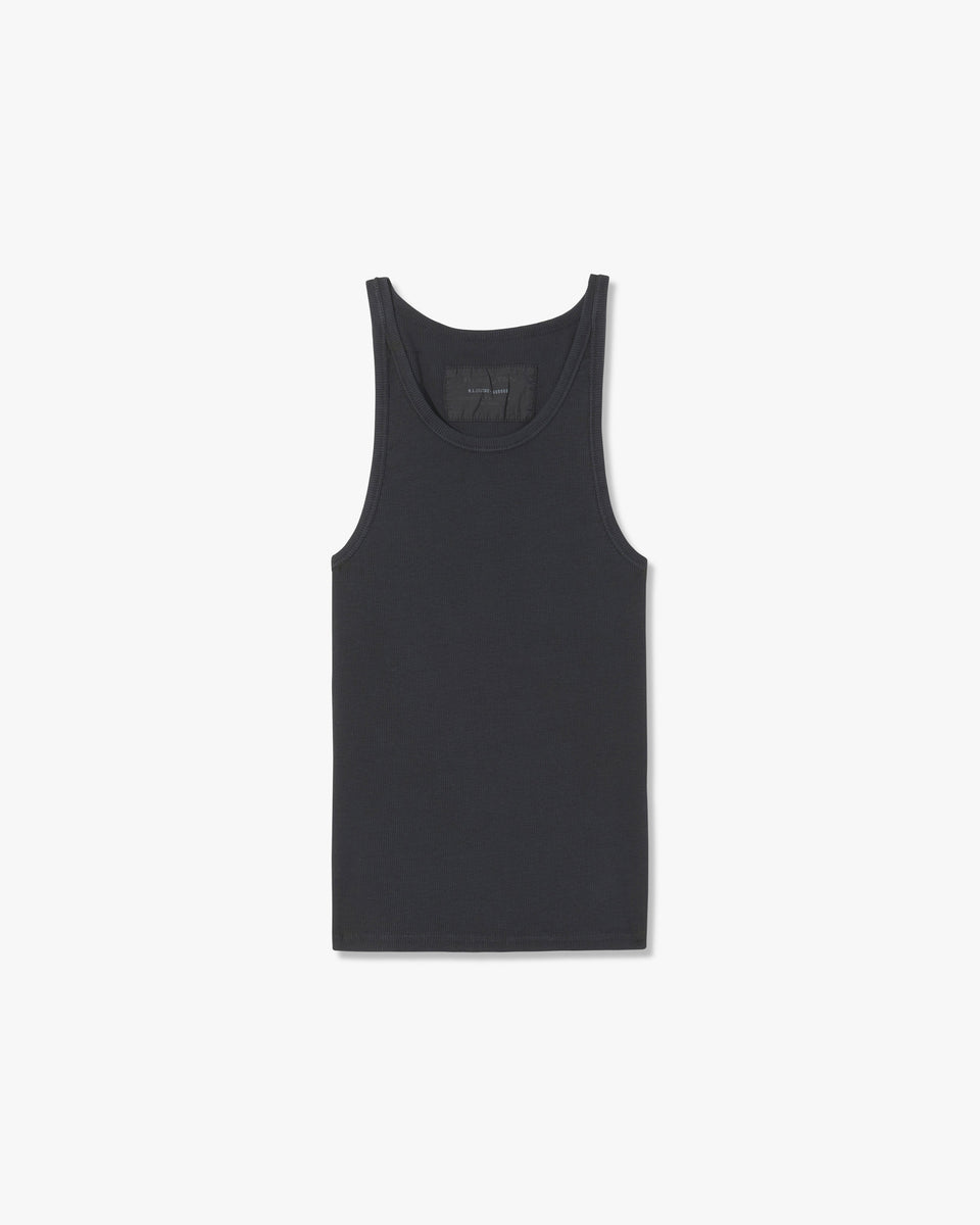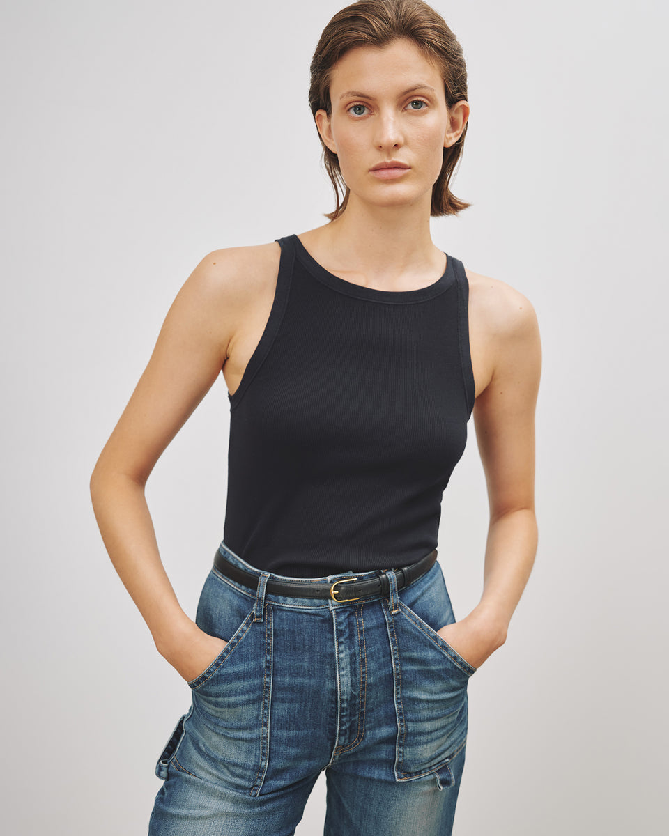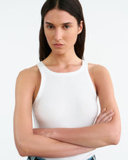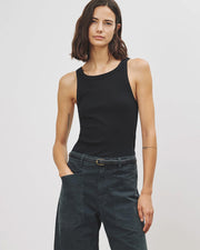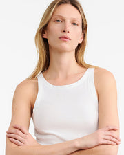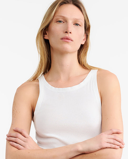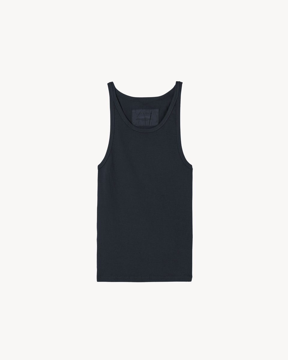 Slim fit rib tank. Bra friendly.