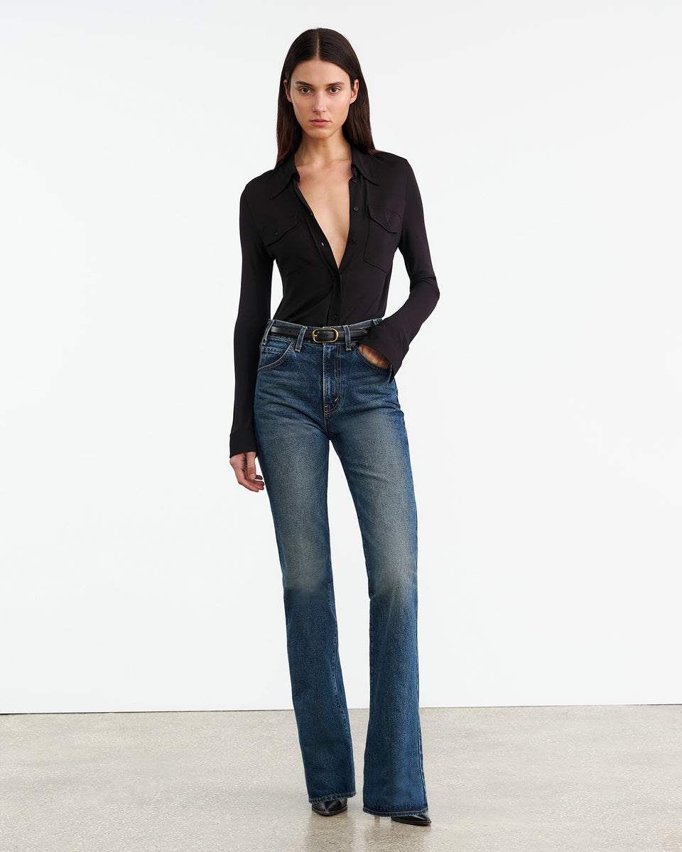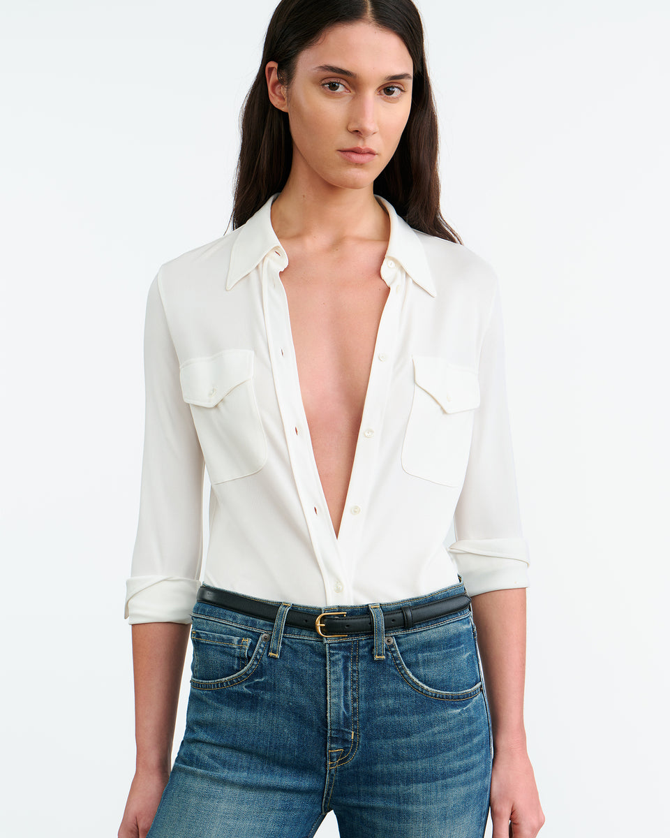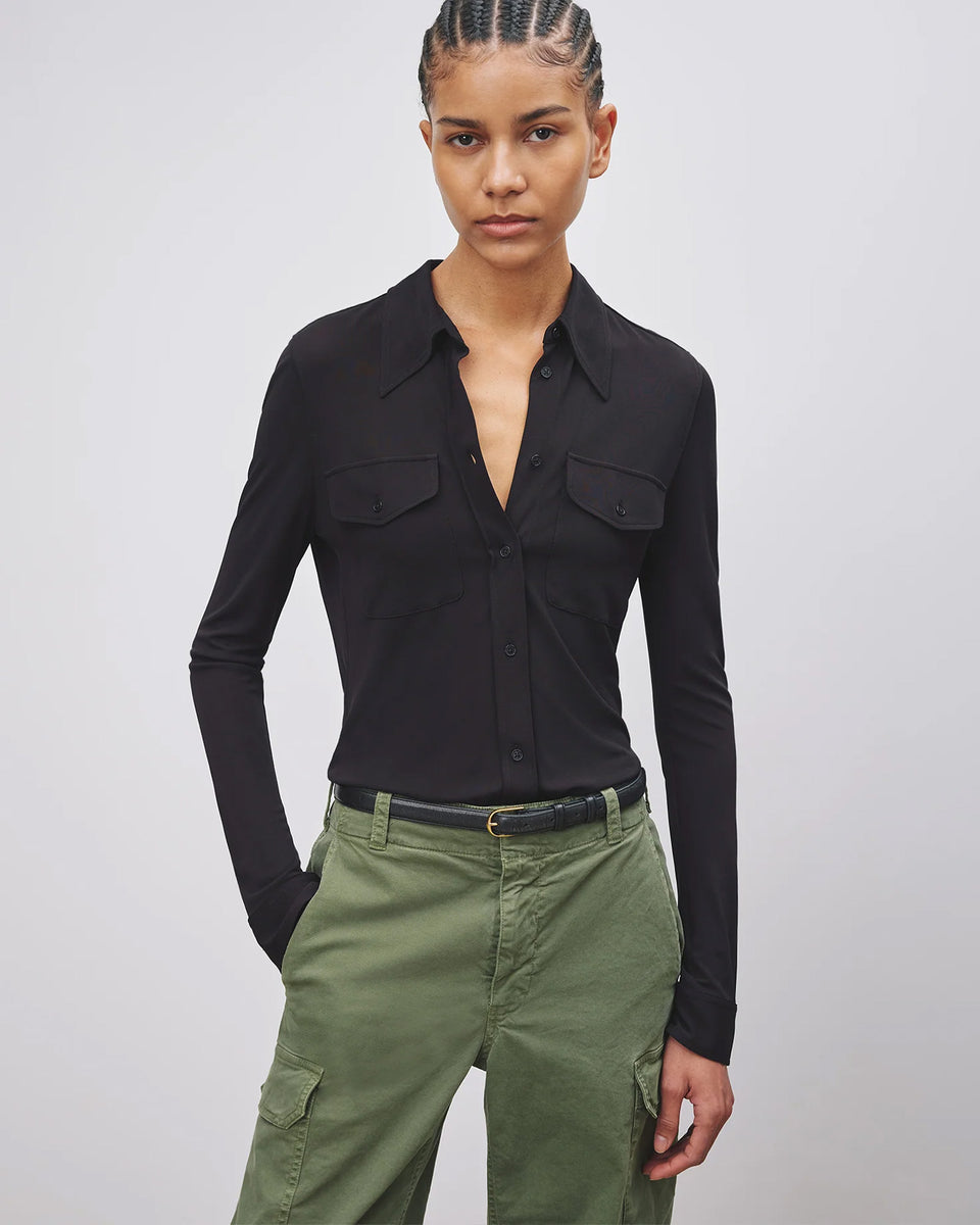 A classic silk button-down, seen through the Nili Lotan lens. Tailored in an ultra-lightweight viscose, the Aveline Shirt features a relaxed collar and two front pockets.