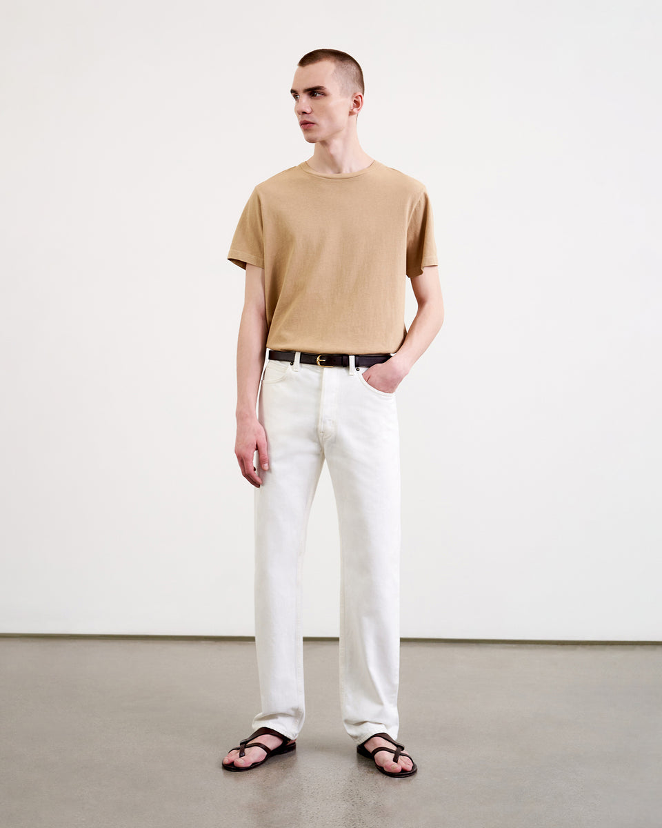Classic boxy tee in American cotton. Standard collar. Vintage pitch sleeve.